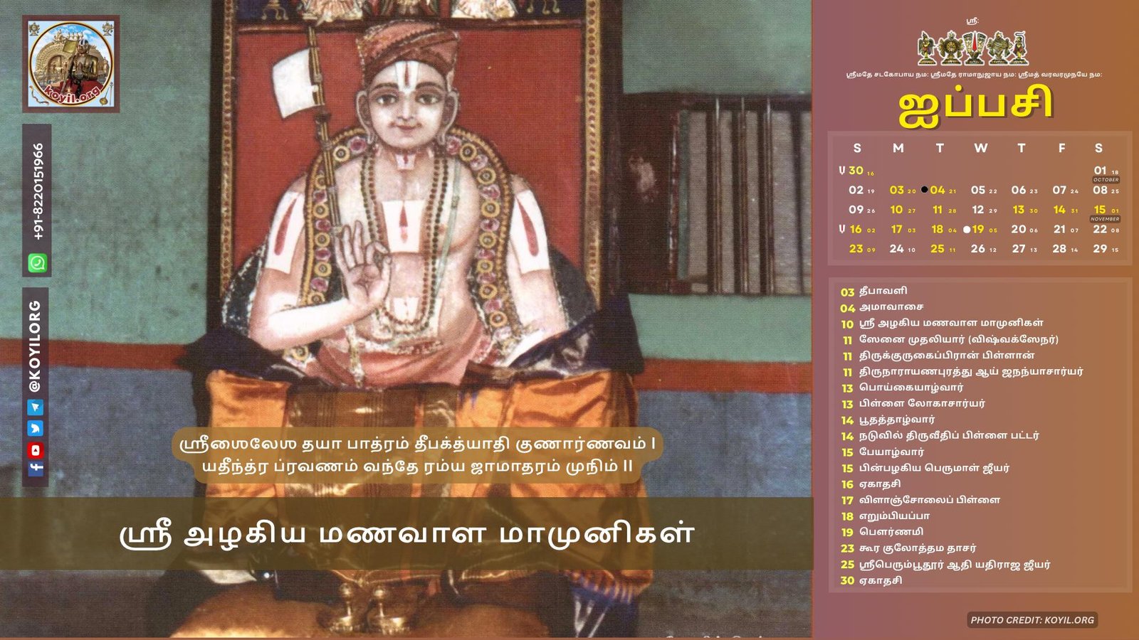 | 51 | 04-11-2025 | aippasi | rEvathi | dhEvarAja guru (eRumbi appA) |