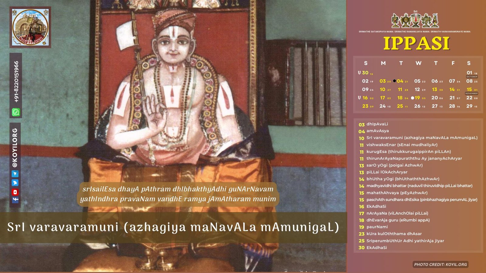 | 45 | 30-10-2025 | aippasi | thiruvONam | piLLai lOkAchAryar |