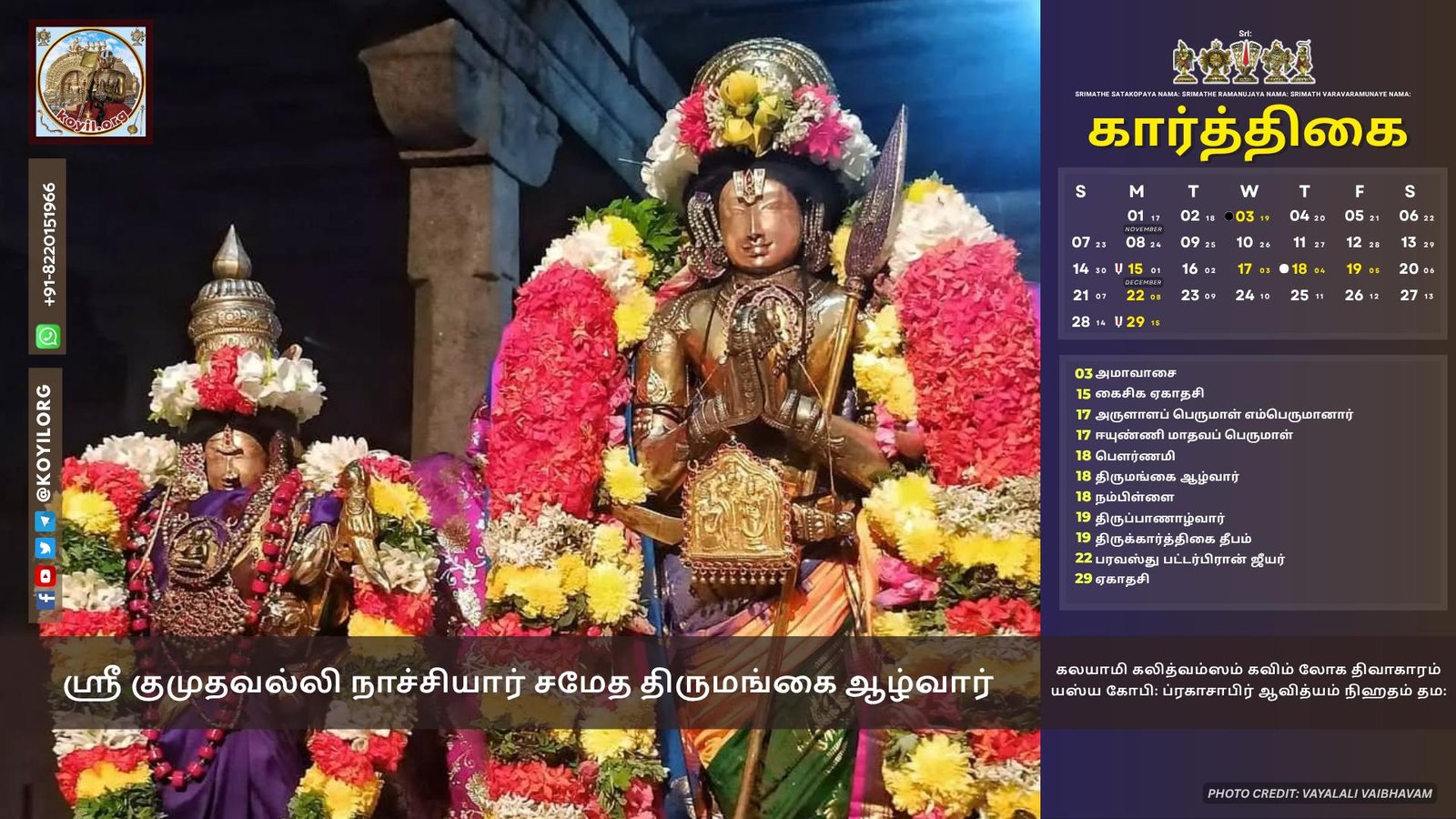| 56 | 04-12-2025 | kArthikai | kArthikai | SrI parakAla (thirumangai AzhwAr) |