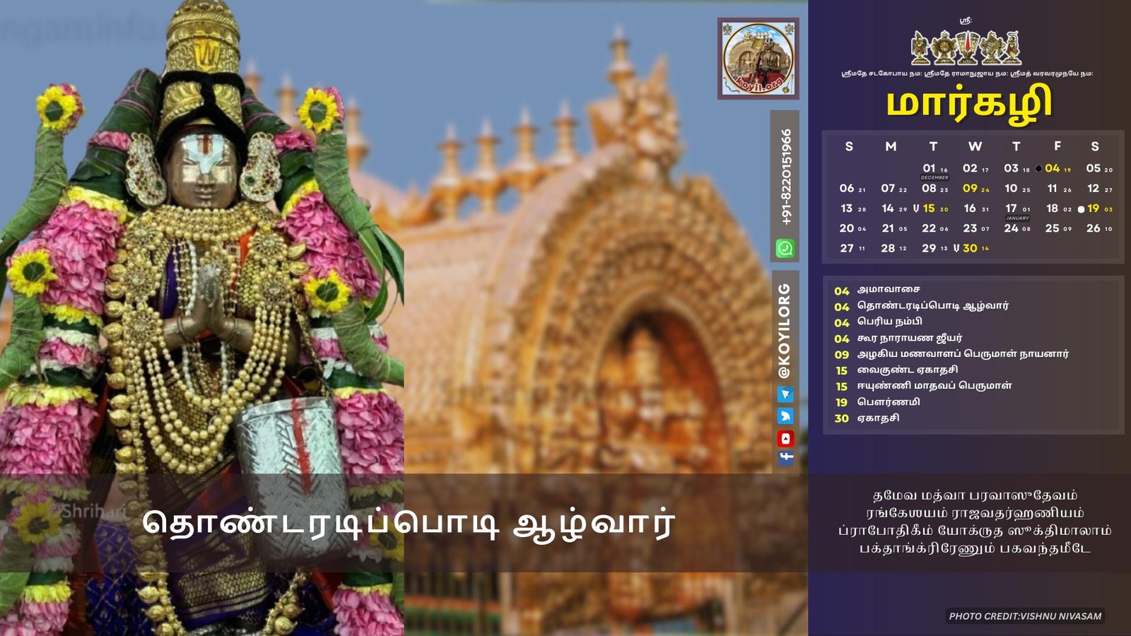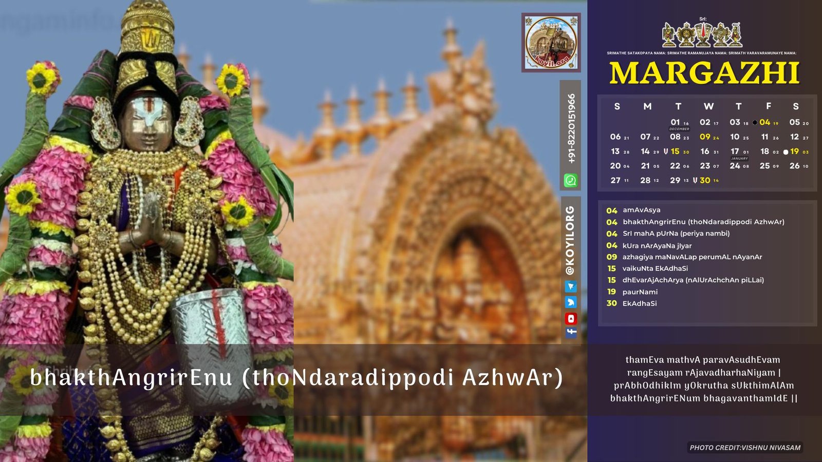 | 60 | 19-12-2025 | mArgazhi | kEttai | bhakthAngrirEnu (thoNdaradippodi AzhwAr) |