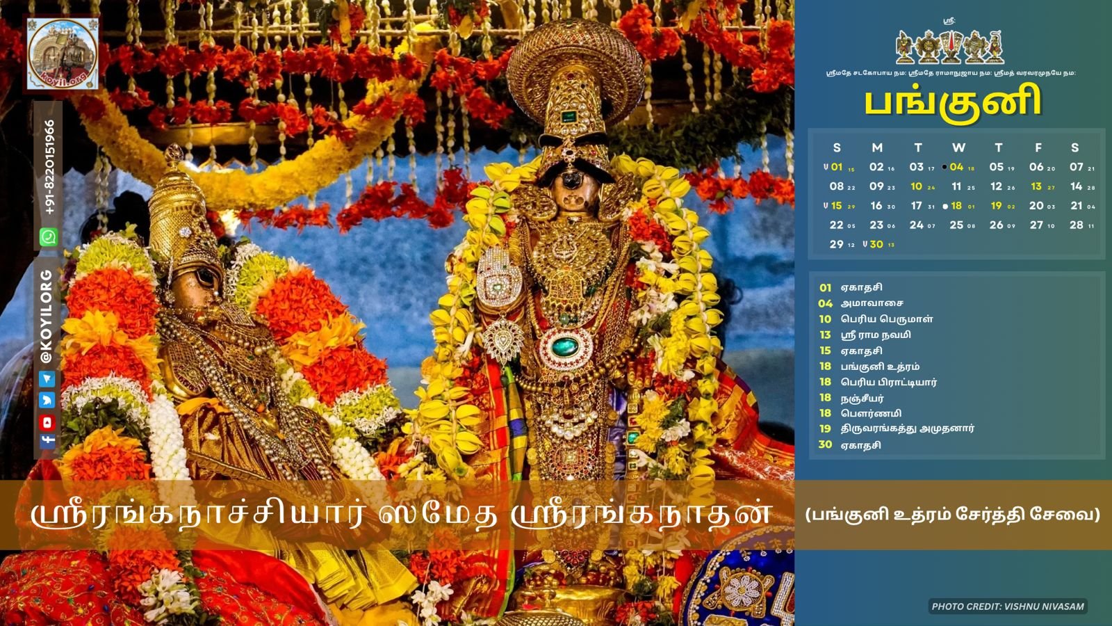 | 75 | 24-03-2026 | panguni | rOhiNi | SrIman nArAyaNan (periya perumAL) |